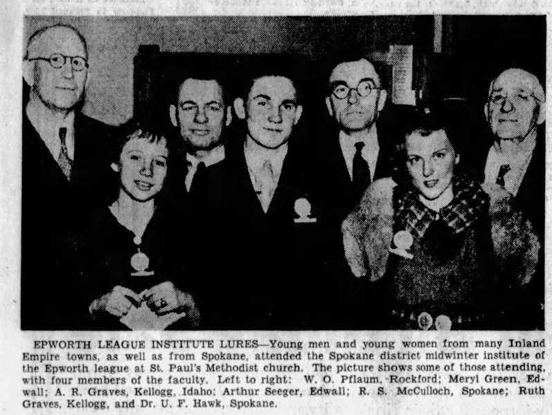 Arthur Seeger in Epworth League photo from Spokesman-Review via newspapers.com