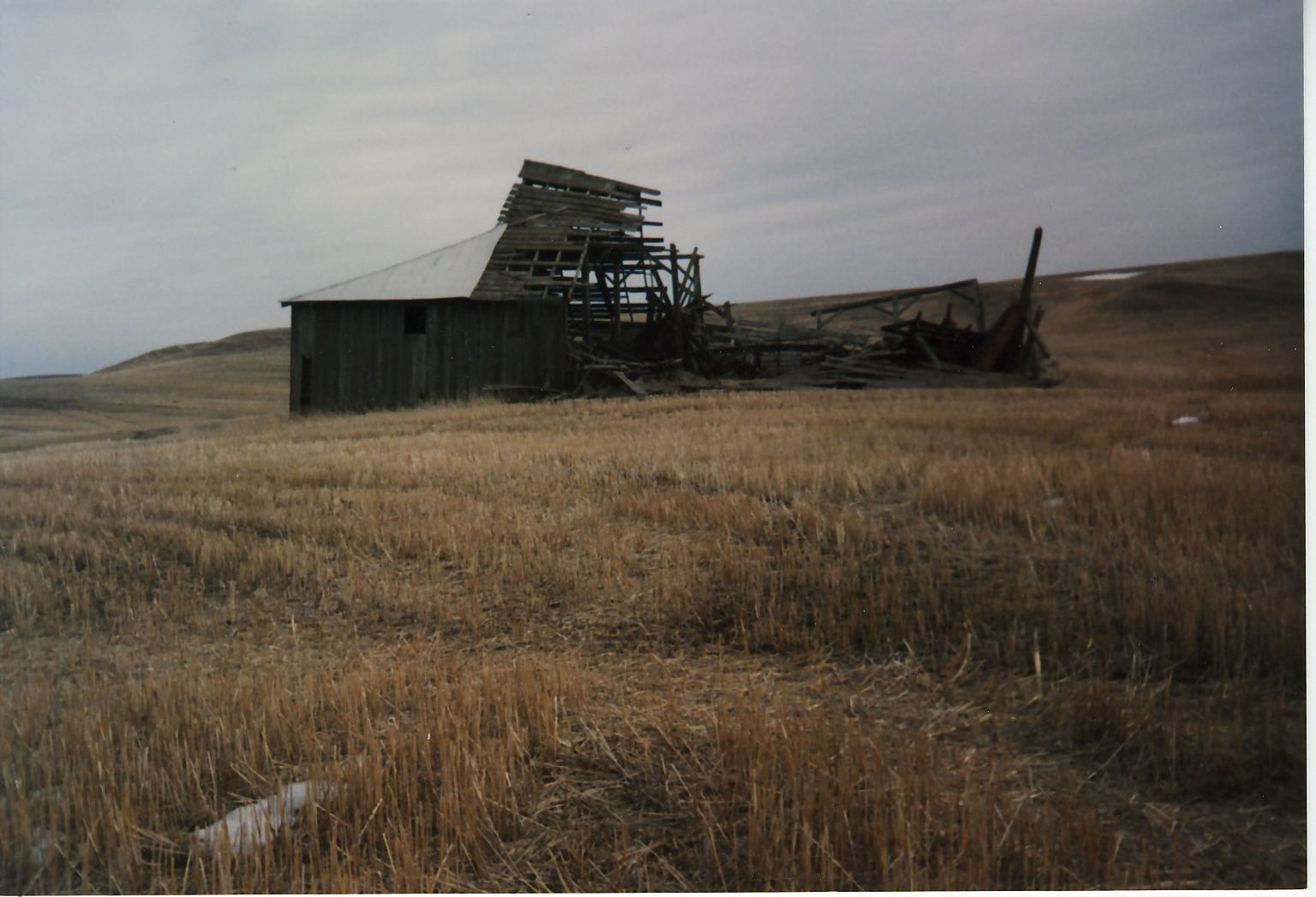 Fallen Rice barn, Carlson family photo taken around 1986.
