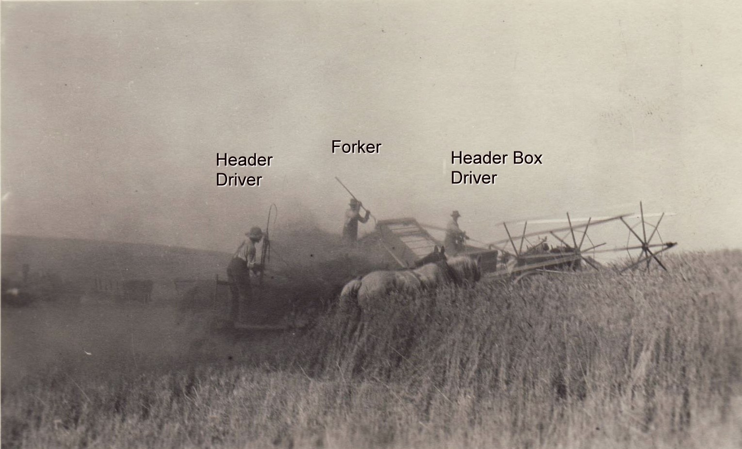 Photo of a header or reaper with parts identified. From Carlson photograph collection.