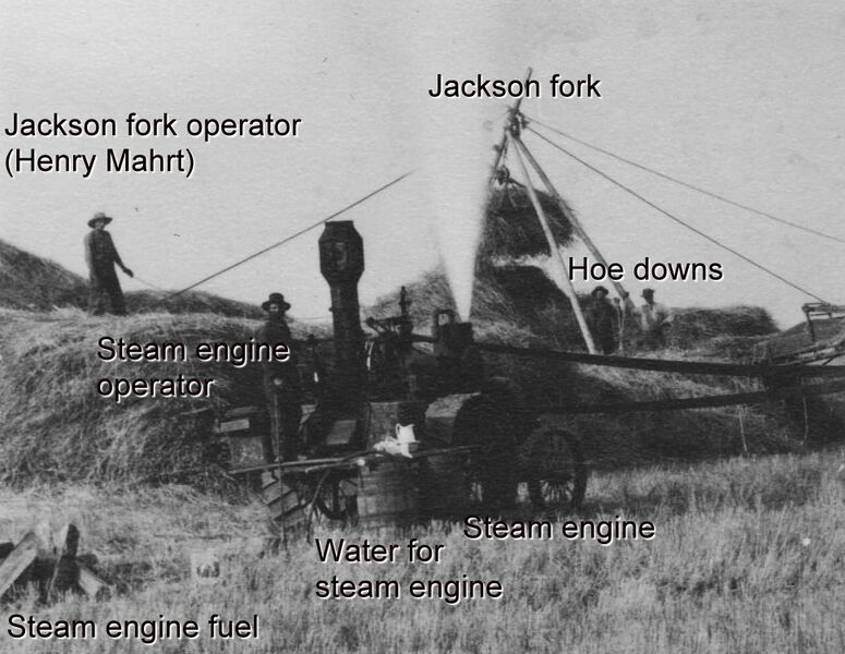 | current | 12:11, 31 October 2022 | 969 × 750 (176 KB) | Kirk (talk | contribs) | Photograph of Mahrt threshing outfit left hand side. Photograph likely to be early 1900s and may be by Otto Mahrt. Photograph from the Carlson family photograph collection. |