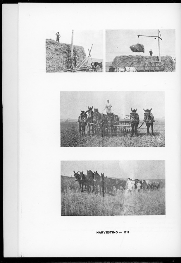 Photos of Harvest 1912. (Page from " Without a Little Teamwork You Can\'t Run the Ranch: Sketches of a Reardan Pioneer and His Family" by Margret Clare Wagner Johnson.)