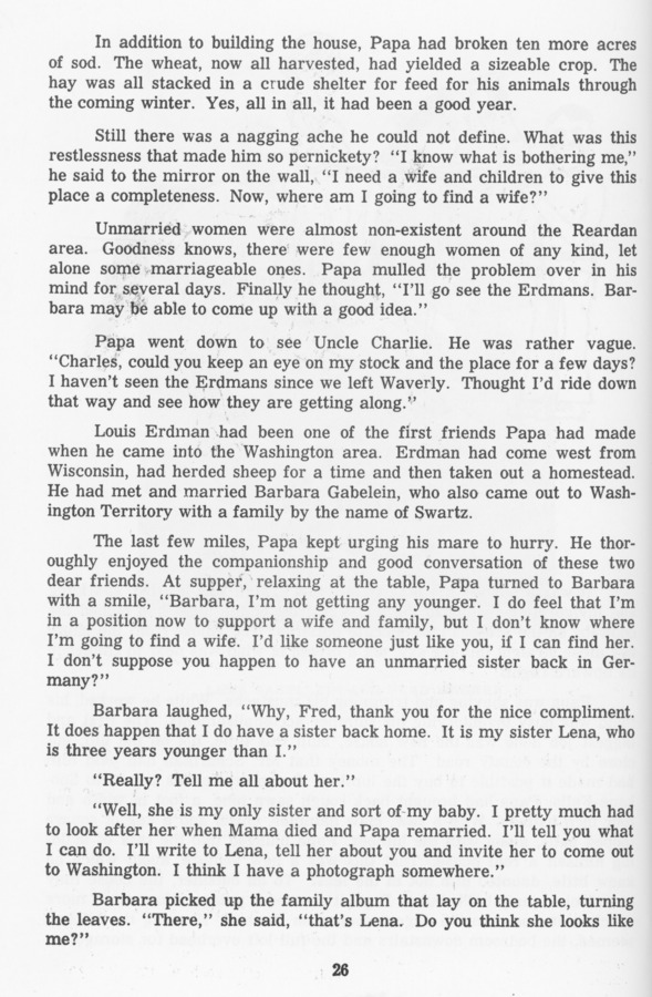 (Page from " Without a Little Teamwork You Can\'t Run the Ranch: Sketches of a Reardan Pioneer and His Family" by Margret Clare Wagner Johnson.)