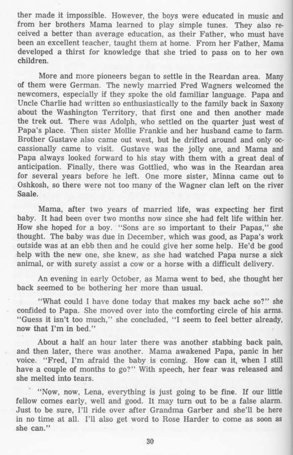 (Page from " Without a Little Teamwork You Can\'t Run the Ranch: Sketches of a Reardan Pioneer and His Family" by Margret Clare Wagner Johnson.)