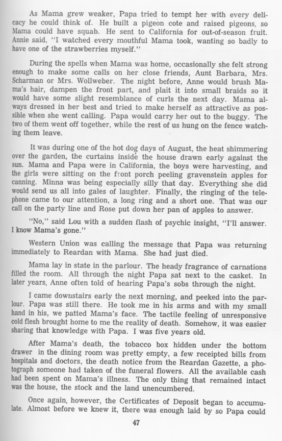 (Page from " Without a Little Teamwork You Can\'t Run the Ranch: Sketches of a Reardan Pioneer and His Family" by Margret Clare Wagner Johnson.)