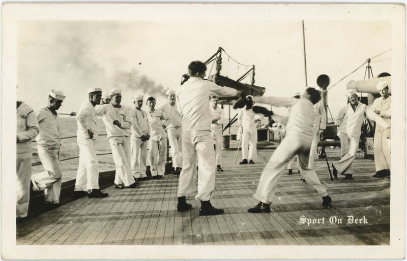 Sport on Deck (appears to be two sailors boxing as others look on.)