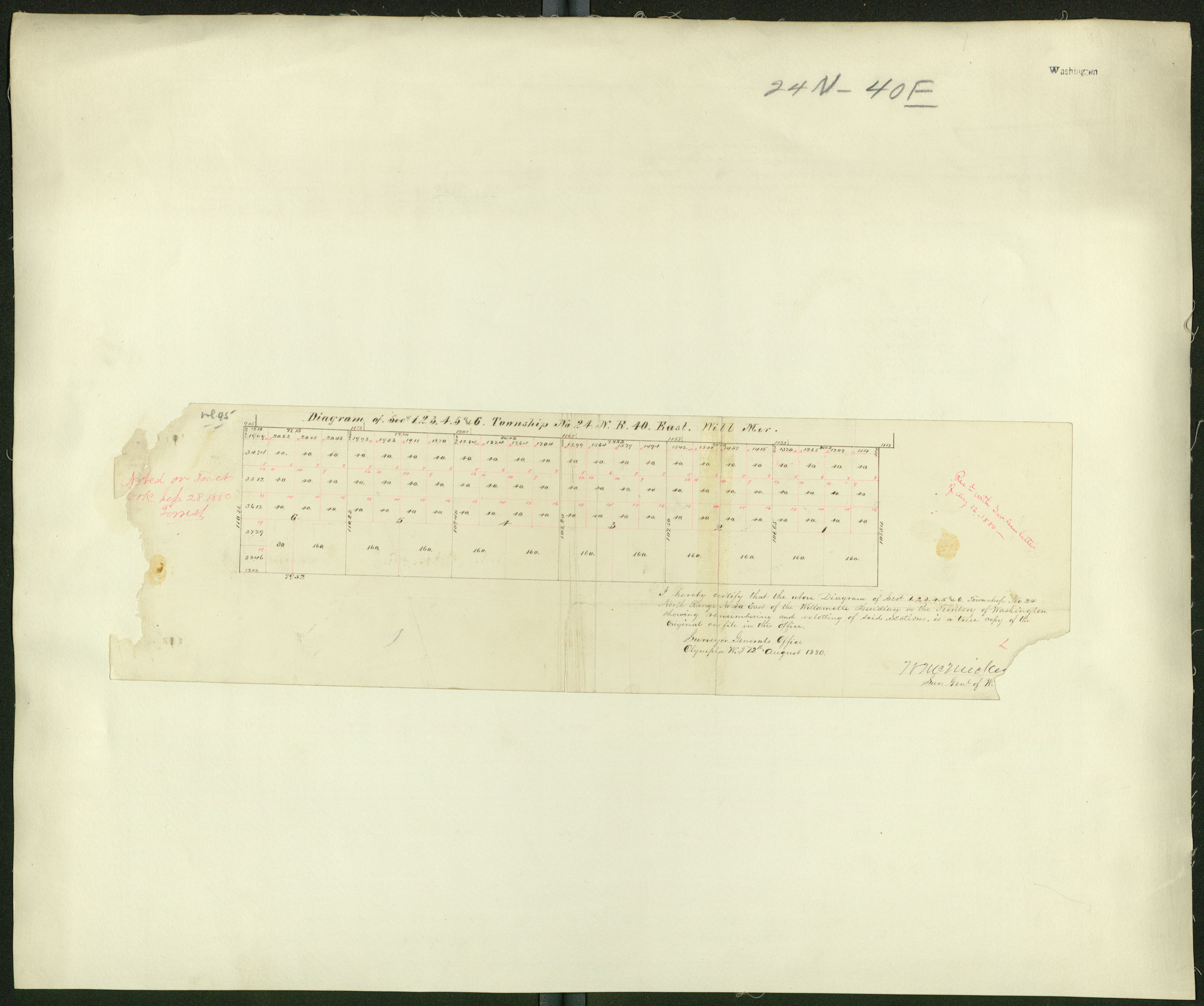 Original diagram of T24N R40EWM held by the Bureau of Land Management