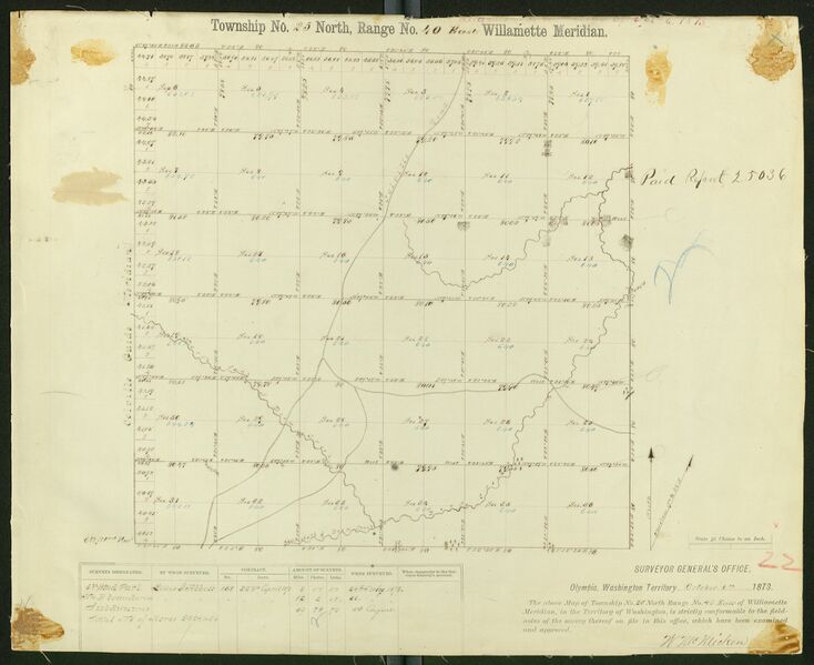Original plat of T25N R40EWM held by the Bureau of Land Management