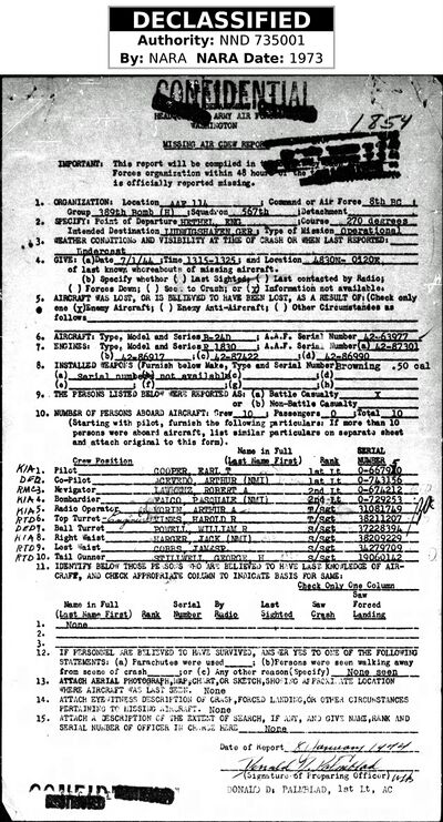 [from https://findagrave.com/memorial/42772955/george-h-stillwell: George Stillwell was a tail gunner on a B-24 bomber with the 8th Air Force, 389th Bombardment Group, 567th Bombardment Squadron. The plane was serial number 42-63977 and it's nickname was 'LOS ANGELES CITY LIMITS'. Their target was Ludwigshafen, Germany, but they were shot down by German fighter planes over Sully-la-Chapelle France. Six of the crew were killed, one was taken Prisoner Of War and three evaded capture (Stillwell was one of those).]