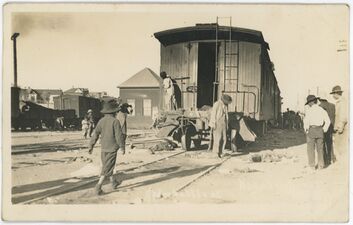 "Bodies around railroad car, After battle Nogales, Sonora, Mexico"
