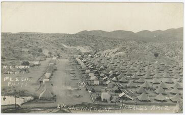 "2nd California Infantry Camp, Nogales AZ; H. E. Wood Photo; H. E. Wood Troop "F" 1st US Cavalry Photo"