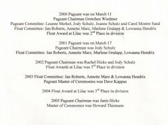 These scrapbook pages provide overview information about Reardan royalty, pageants, float themes and committees. Most of this material is provided on the Royalty page and is included here mainly as a reference. The scrapbooks are held by the Reardan Memorial Library.